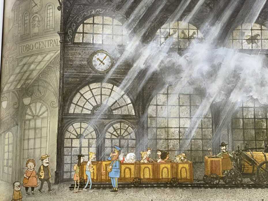 Po pożegnaniu chłopca z babcią, autor przenosi małych czytelników w cudowne scenerie. Wsiadamy do starożytnego pociągu, który prowadzi nas przez ogromne mosty do zapierających dech w piersiach światów. Napotykamy idealne połączenie rzeczywistości i fikcji oraz spotykamy bardzo rozbieżne i niesamowite osobowości. Jest tam także wiele innych imponujących żywych istot i stworzeń.