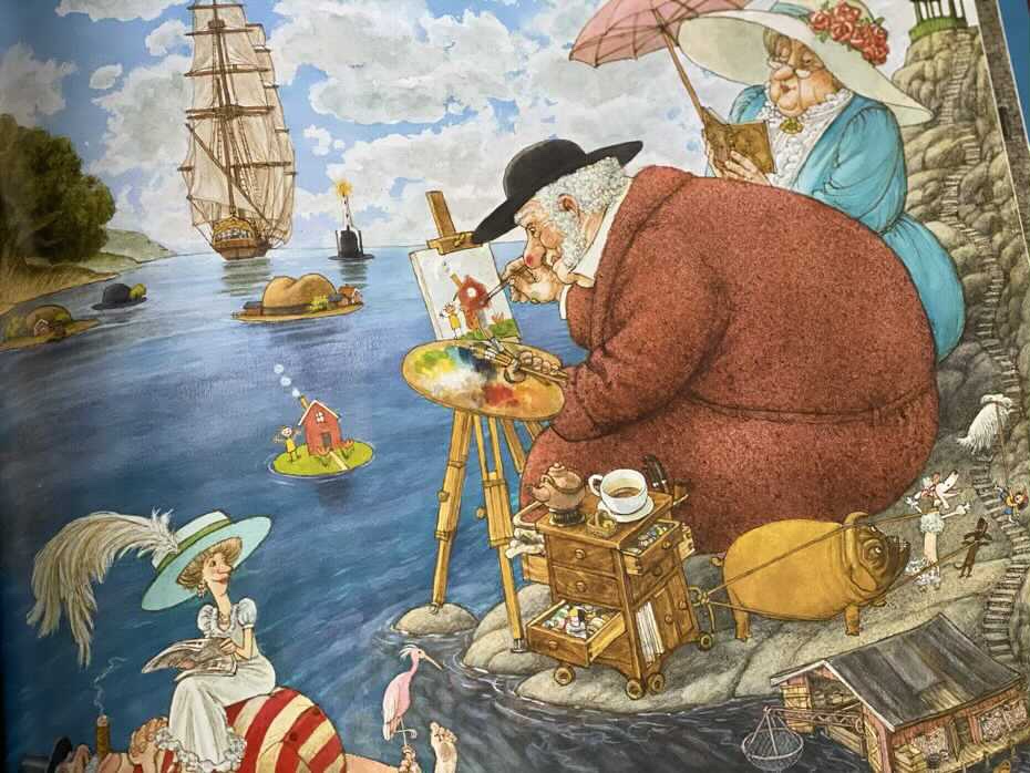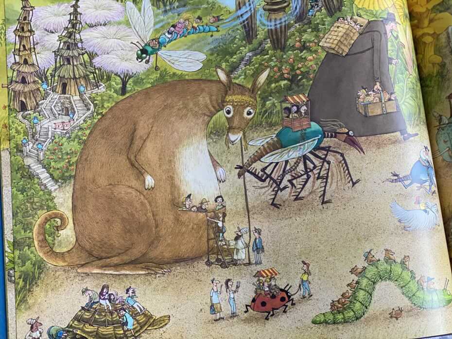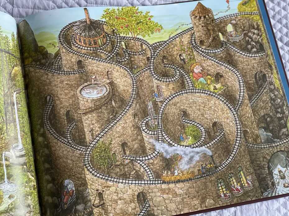 Na każdej stronie spotykamy surrealistyczne i niezwykłe ilustracje, które w żadnym wypadku nie są spójne. Pokazują przytłaczającą mieszankę fantastycznych stworzeń, wodospadów, rzek, struktur, zwierząt, ludzi, pojazdów i wszelkiego rodzaju innych rzeczy. Można godzinami spędzać czas na jednej stronie, odkrywając nowe rzeczy i zobaczyć coś nowego następnym razem. Dla młodszej grupy docelowej rozwija się tu świat pełen wyobraźni. My dorośli, widzimy w tym aluzje i dziwactwa społeczne. Czasami są ponure i przygnębiające, potem znowu przyjazne i kolorowe.