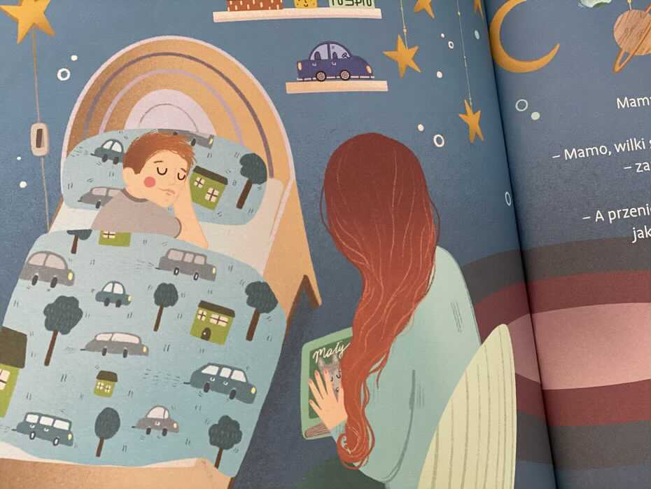 Mama opowiada całą historię synkowi, jako dobranockę przy wieczornym czytaniu. Nagle chłopczyk zapragnął być Małym Wilczkiem z książki i prosi mamę, aby zaniosła go do łóżka rodziców, gdzie chce zasnąć wspólnie ze swoją rodziną.