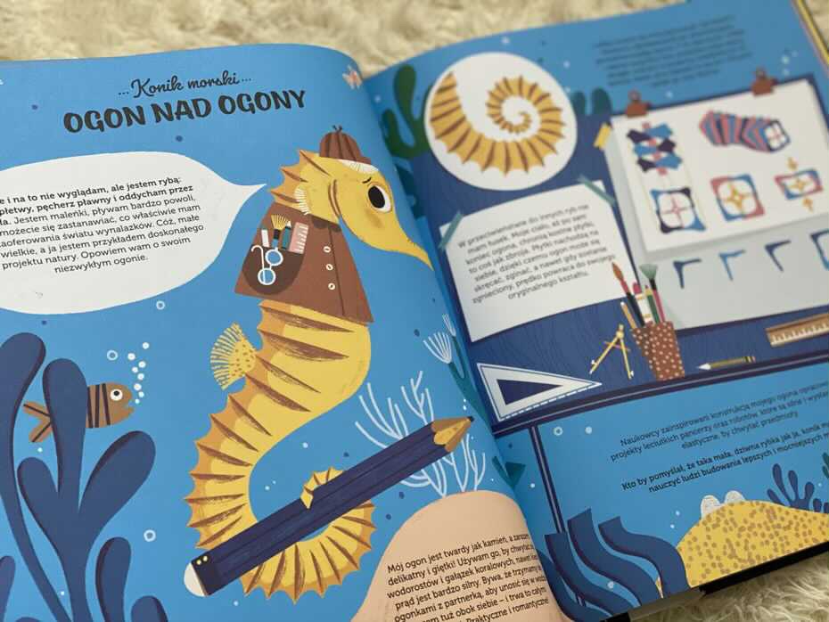„Wynalazcy. Poznaj zwierzęta, które inspirują świat nauki” to lektura, która odsłania fascynujące królestwo zwierząt i sposób, w jaki zainspirowało ono ludzkie wynalazki. Według mnie jest to świetna książka dla dzieci, pokazująca jak ludzie korzystają z innowatorów świata fauny w życiu codziennym. Obserwacja przyrody pozwala człowiekowi na tworzenie coraz lepszych rzeczy, minimalizujących zużycie energii i śmieci. Część ludzkiej inwencji jest wątkiem poruszanym w całej książce, ale tak naprawdę nie stawia ona w centrum ludzkiej pomysłowości. Raczej skupiono się tu na blasku i nieodłącznym charakterze natury. Jest to wspaniała, poruszająca książka o tym, jak zwierzęta mogą nas inspirować i doskonała lekcja dla ludzi! Gorąco polecam.