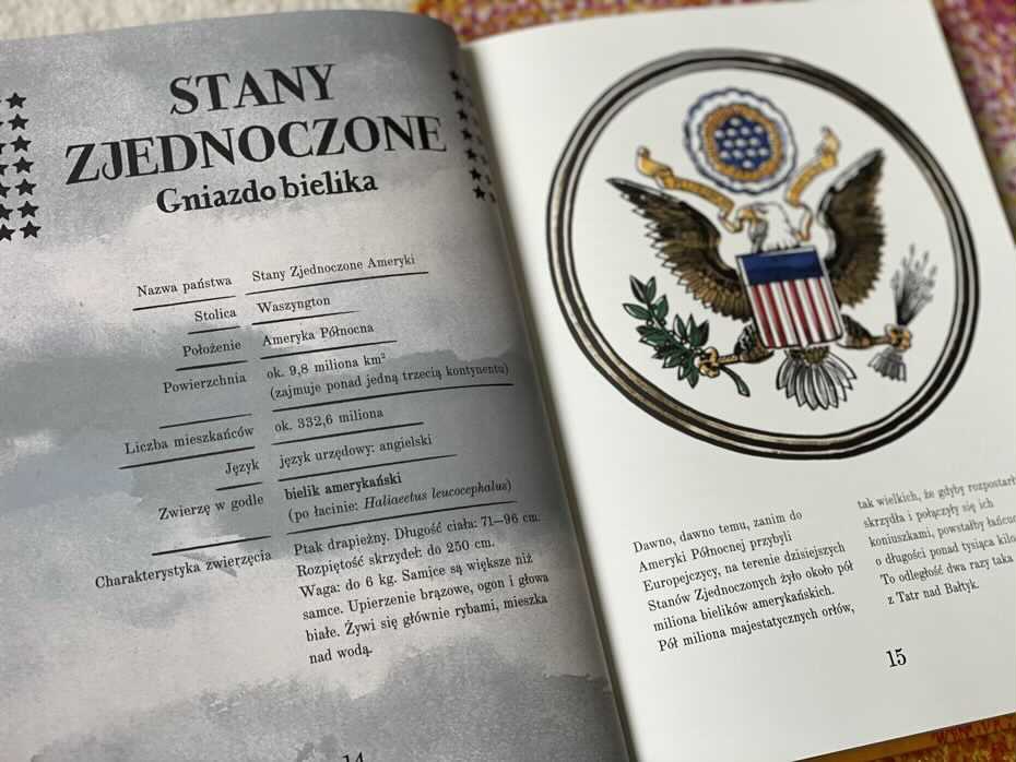 Czytelnik na wstępie zostaje zapoznany z położeniem i krótką historią danego państwa. Zaraz potem czyta opowieść o jego godle, a dokładnie dlaczego umieszczono w nim właśnie to, a nie inne zwierzę.