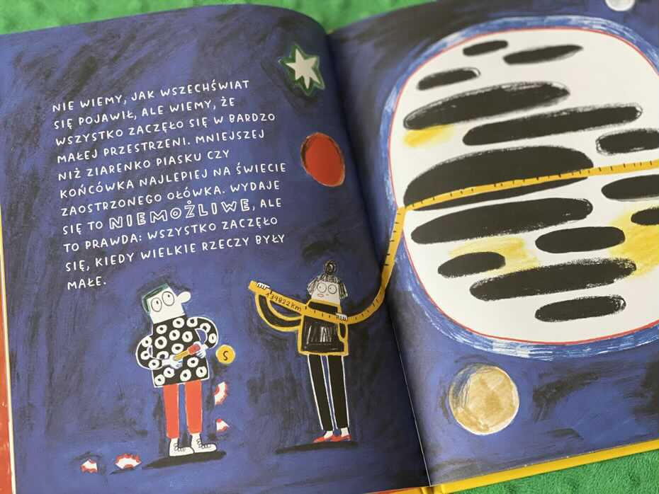 Książka stanowi dobre wprowadzenie do kosmologii. Podczas przewracania każdej strony znajdujemy wiele wykrzykników, pytań i stwierdzeń. Dobrym pomysłem jest pojawiająca się na ilustracjach linia czasu i przykłady pomagające zrozumieć małym czytelnikom, o jakich wielkich liczbach mówimy. Niniejszy tytuł jest jedną z tych lektur, który wzbogaca zasób słownictwa dzieci, dając rodzicom wiele możliwości eksploracji.