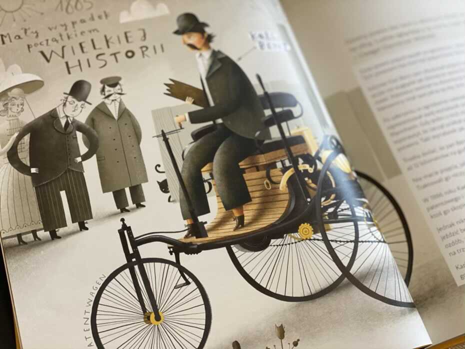 Książka w wybiórczy sposób opowiada o historii motoryzacji. Z niej dzieci dowiedzą się między innymi kto skonstruował pierwszy samochód oraz jak skuteczną kampanię reklamową przeprowadziła pani Bertha Benz. Zobaczą zawartość skrzynki dawnego automobilisty, historię oświetlenia, modę automobilową i sposoby uruchamiania samochodu.