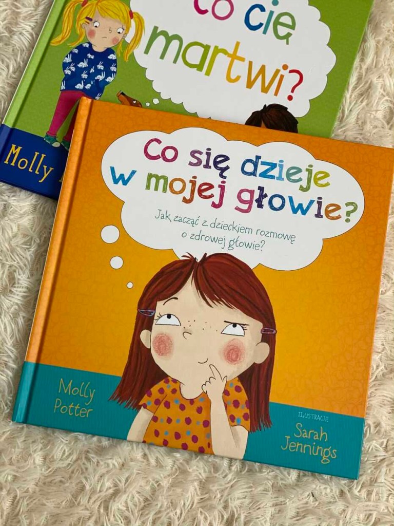 „Co się dzieje w mojej głowie jak zacząć z dzieckiem rozmowę o zdrowej głowie” to według mnie doskonała książka do wykorzystania jako punkt wyjścia do dyskusji z dziećmi. Zawiera wytyczne dla rodziców / opiekunów, a jej celem jest pomoc dzieciom w rozwijaniu samoświadomości i poprawie ich umiejętności emocjonalnych. Ma krótki, ale precyzyjny tekst, który pokazuje maluchom, jak używać narzędzi, które pomogą im zachować zdrowy umysł, ćwiczyć zdrowe nawyki umysłowe i radzić sobie ze zmartwieniami.