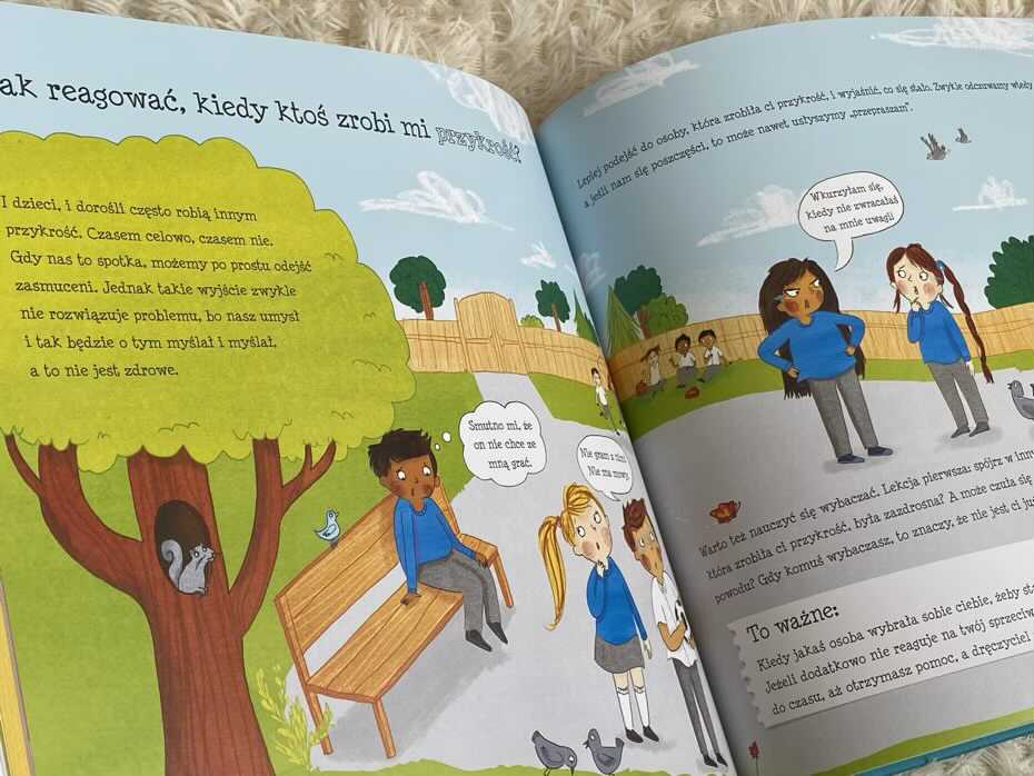 Zaprezentowana jest w ciepły, przyjazny, ale rozsądny sposób, pomoże stworzyć solidne podstawy dla obecnego i przyszłego dobrego samopoczucia każdego dziecka. Niniejsza pozycja to świetne narzędzie dla najmłodszych, rodziców i nauczycieli w poszukiwaniu idealnego zdrowia psychicznego. Polecam.