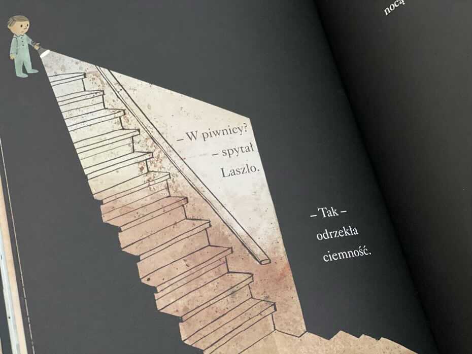 „Laszlo boi się ciemności” to książka dla dzieci, która będzie idealna do rozmowy z nimi o ich lękach. Obrazy są ciemne, nieco uproszczone i przerażające. Czarny kolor żyje i oddycha na kartach tej lektury. Intensywny, głęboki kolor wciąga czytelników z tajemniczą mocą. Myślę, że pozycję śmiało można przeczytać dziecku borykającemu się ze strachem przed ciemnością, a tym samym pokazać, że nie ma się czego bać. Prosty styl tekstu i ilustracji tworzą unikatowy klimat z zaskakującym zakończeniem, który pozwoli każdemu dziecku uporać się ze swoimi obawami.