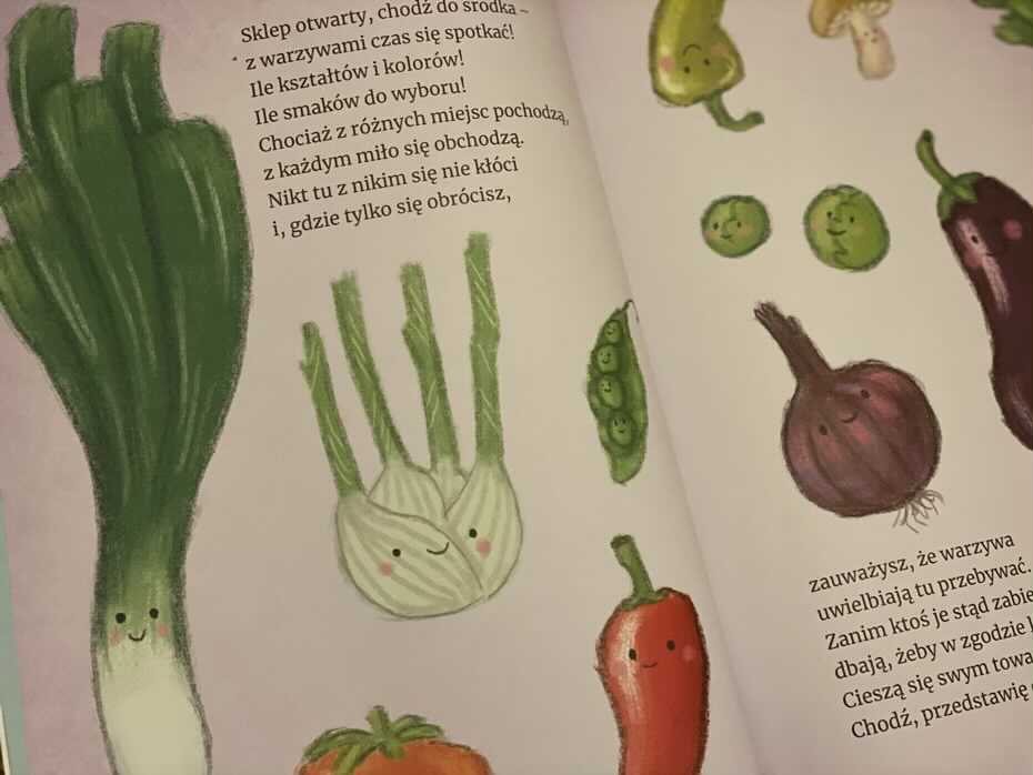 Mali czytelnicy dzięki tej książce z przyjemnością odkryją nowe warzywa, ich wygląd, smak i zalety. Każdej zieleninie poświęcony jest osobny, krótki wiersz z jej najbardziej charakterystyczną cechą oraz przyjemną dla oka ilustracją. Rymowanki są krótkie i zawierają żartobliwe elementy, które idealnie wpisują się w gust najmłodszych czytelników. Taki sposób czytania historyjek na głos świetnie wpływa na kojarzenie i zapamiętywanie tekstu. W taki sposób z łatwością można przemycić sporą dawkę wiedzy, bez przemęczania małego umysłu i zapewnić fajną naukę przez zabawę.