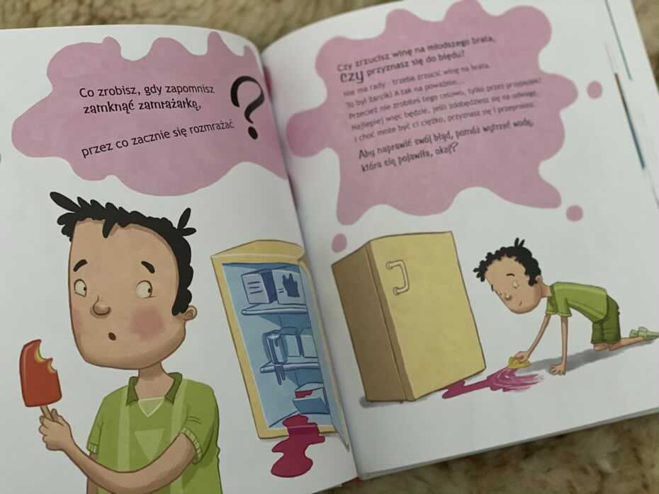„Co zrobisz, gdy…? Pytania, które warto sobie zadać” to pomocna książka, która zachęca do myślenia i podsuwa dobre, bezpieczne rozwiązania małemu dziecku. Daje możliwość zmierzenia się z trudną sytuacją, zanim młody człowiek naprawdę się w niej znajdzie. Myślę, że lektura pomoże otworzyć dialog między rodzicem a dzieckiem, nauczy dzieci przestrzegania zasad, przyjmowania nowych obowiązków i bycia odpowiedzialnym za swoje czyny, nawet jeśli nie dokonuje się dobrych wyborów. Polecam.