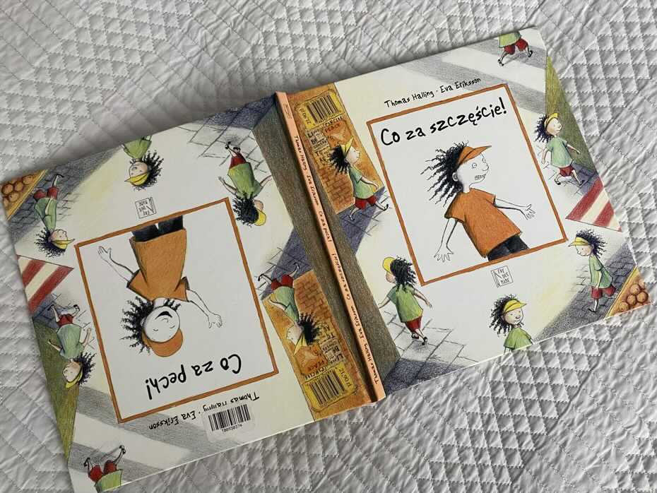 „Co za szczęście! Co za pech!” to humorystyczna i inspirująca książka, która zachęca do rozważenia konsekwencji dokonywania wyborów. Pokazuje, jak można spojrzeć na różne rzeczy, np. czy szklanka wody jest w połowie pełna, czy pusta. Ciekawe, jakie Wy macie na to spojrzenie? Dla mnie szklanka zawsze jest w połowie pełna.