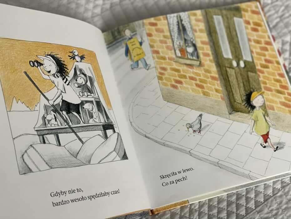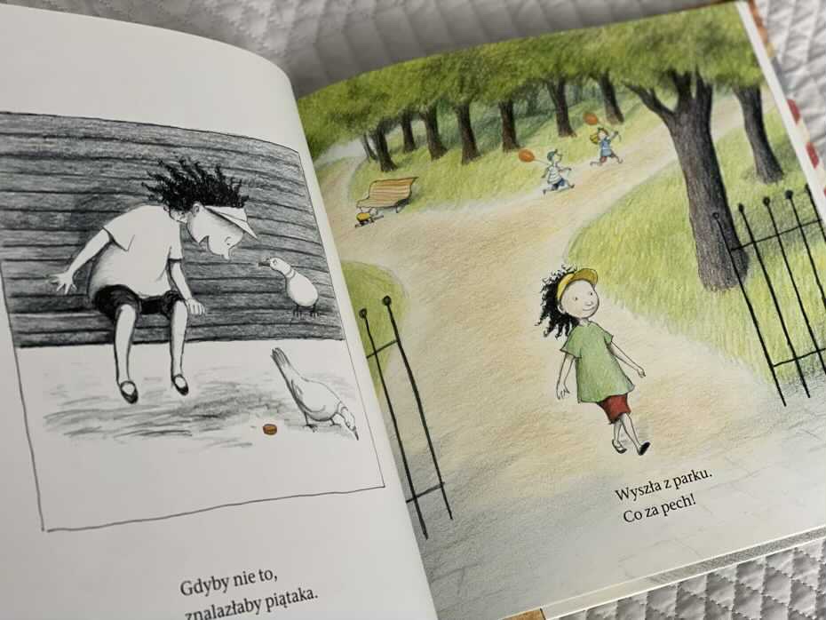 „Co za szczęście! Co za pech!” to przewrotna, niezwykła historia o zwykłym dniu małej dziewczynki i o tym, co się w nim nie wydarzyło.