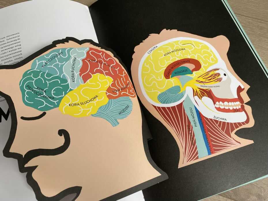 Publikacja wzbogacona jest także ozdobnymi, laserowymi cięciami, pozwalającymi na dokładne poznanie ciała. Młody odbiorca będzie mógł przyjrzeć się, jak człowiek wygląda w środku, a ruchome klapki odsłaniają tajniki działania poszczególnych elementów.