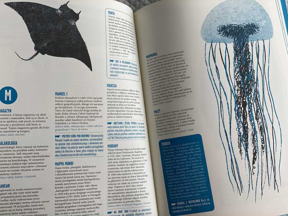 „Morze” to bogaty w informacje i ciekawie zaprojektowany leksykon, oferujący czytelnikom głębię wodnych faktów.