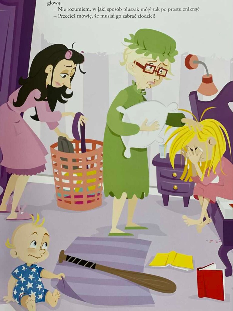 Charlie postanowił przeszukać pokój starszej siostry. W pewnym momencie natrafił na lśniący guzik, kawałek czerwonego plastiku i trochę okruchów ciastek. I to właśnie pierwszy z tych przedmiotów naprowadza bobasa do złodzieja zabawki. Tutaj przerwę opowiadanie i zaproszę Was do sięgnięcia po książkę, która spodoba się każdemu dziecku lubiącemu zagadki detektywistyczne i superbohaterów.