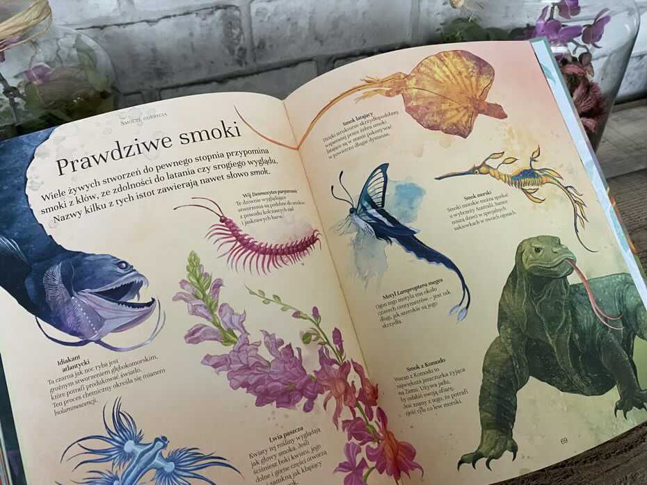 „Smoki” to budząca podziw, magiczna księga, która tchnie ogniem w umysły małych miłośników bestii na całym świecie. Te ziejące potwory ze swym niepowtarzalnym wyglądem przypadną do gustu wielu dzieciom, lubiącym słuchać bajek z ich udziałem, a także tym, którym niestraszne są smoki. W naszym domu ten temat jest bardzo popularny, dlatego polecam sięgnąć po podobne książki z kategorii smoczych potworów, które pokazałam wcześniej blogu: „Świat smoków. Osobliwości, mity i legendy”, „Fakty i plotki o smokach”, „Wyprawa po smoki. Dołącz do misji i ocal najbardziej niezwykłego smoka na świecie”.