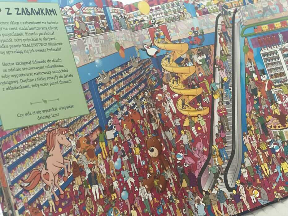 “Gdzie jest Lama?” to lektura dla prawdziwych bystrzaków, zapewniająca rozrywkę na wiele godzin. Jest to bardzo kolorowa i wciągająca pozycja, która za każdym razem odkrywa przed dzieckiem nowe detale.