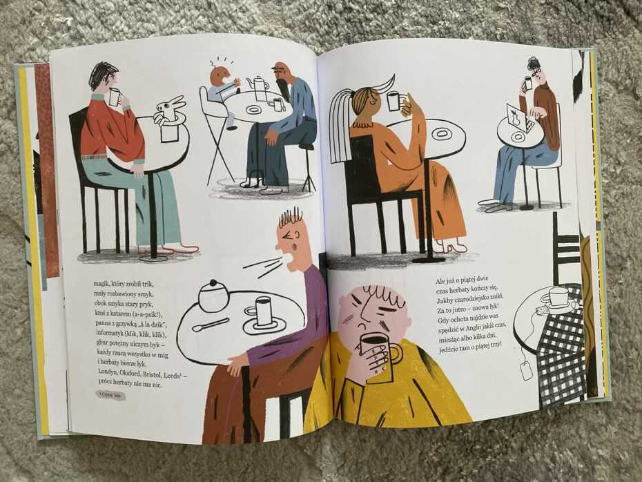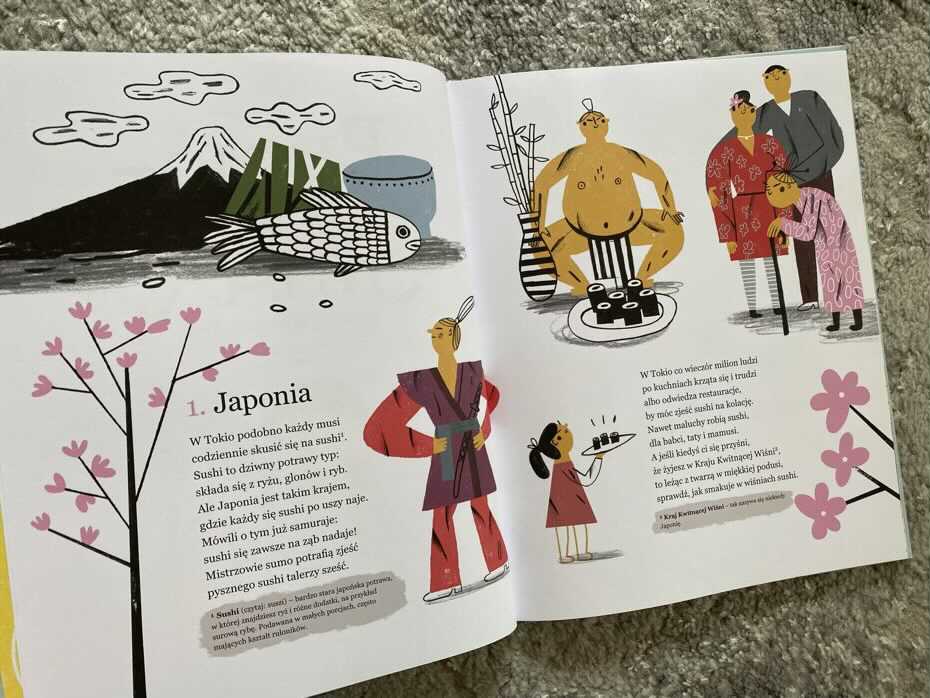 Zgłodnieliście? Ja bardzo! Nie uważacie, że książeczka świetnie działa na kubki smakowe? Zatem myślę, że „Rymosmaki, czyli co się gdzie je na świecie” może stać się fantastyczną przygodą do odkrywania nowych potraw, zabawą w kuchni, a nawet początkiem kulinarnych podróży po różnych kontynentach. Całość czyta się szybko, wszystko jest spójne, a nieznane nazewnictwo wytłumaczone jest na stronach. Rysunki są ciepłe, zabawne i oddają cechy danego kraju. Według mnie lektura jest ciekawa i skłania maluchy do dalszych poszukiwań po książkach kucharskich, wyszukiwań potraw w Internecie, czy choćby odkryć sekretnych rodzinnych przepisów. Polecam.