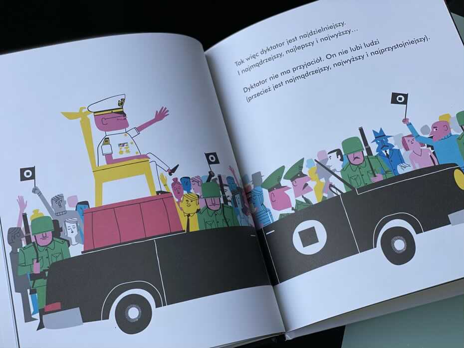 Lektura wyjaśnia czytelnikom, kim jest dyktator, jego typowy profil, sposób rządzenia i konsekwencje dla kraju oraz jego mieszkańców, takie jak pozbawienie wolności myśli, jakości życia itp. Autor wyjaśnia mechanizmy działania oraz upadku dyktatury prostym i zrozumiałym dla dziecka językiem. Groza tej pozycji polega na celności, prostocie i adresacie. To naprawdę trafny i jasny wykład, pokazujący istotę totalitaryzmu. Natomiast sugestywne ilustracje potęgują klimat strachu i zniewolenia.