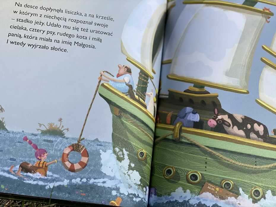 W trakcie podróży mężczyzna wyłowił z wody kilka zwierząt i panią Małgosię. Wkrótce wszyscy dobili do brzegu wyjątkowej wyspy. Pan Kluska, z niezwykłą kobietą przy boku zrozumiał, że wcale nie potrzebuje tak wielu rzeczy, jak dotychczas. Za sprawą pani Małgosi zaraził się także pasją do dbania o Ziemię. Wyzbył się wszystkiego, co posiadał, dzięki czemu poczuł się lżejszy. Zrozumiał, że nadmiar przedmiotów go przytłaczał i wcale nie czuł się szczęśliwy.