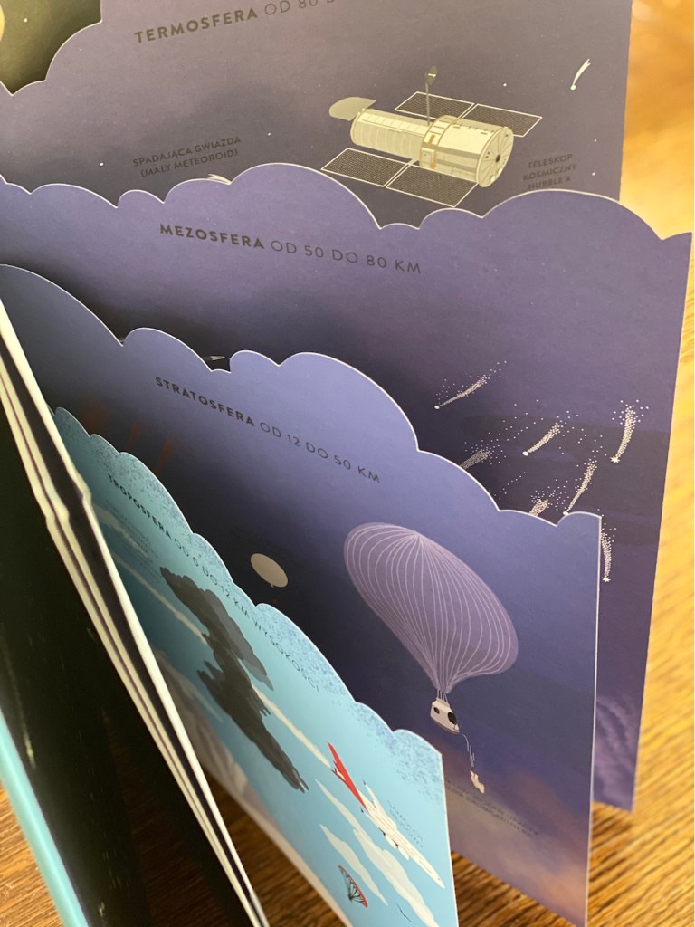 „Niebo. Ruchome elementy, dzięki którym odkryjesz sklepienie niebieskie” to wielkoformatowa książka, która zabiera czytelników w odległą podróż, przez chmury, atmosferę, do planet, gwiazd i dalej.