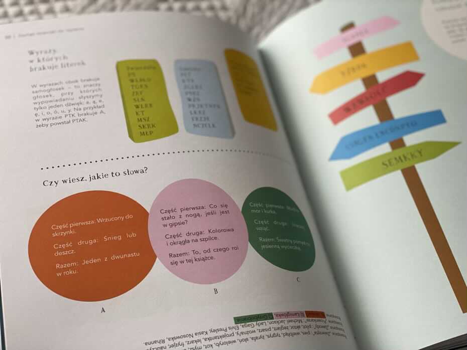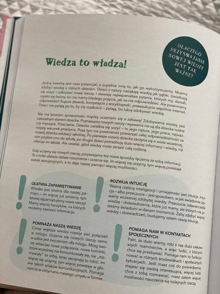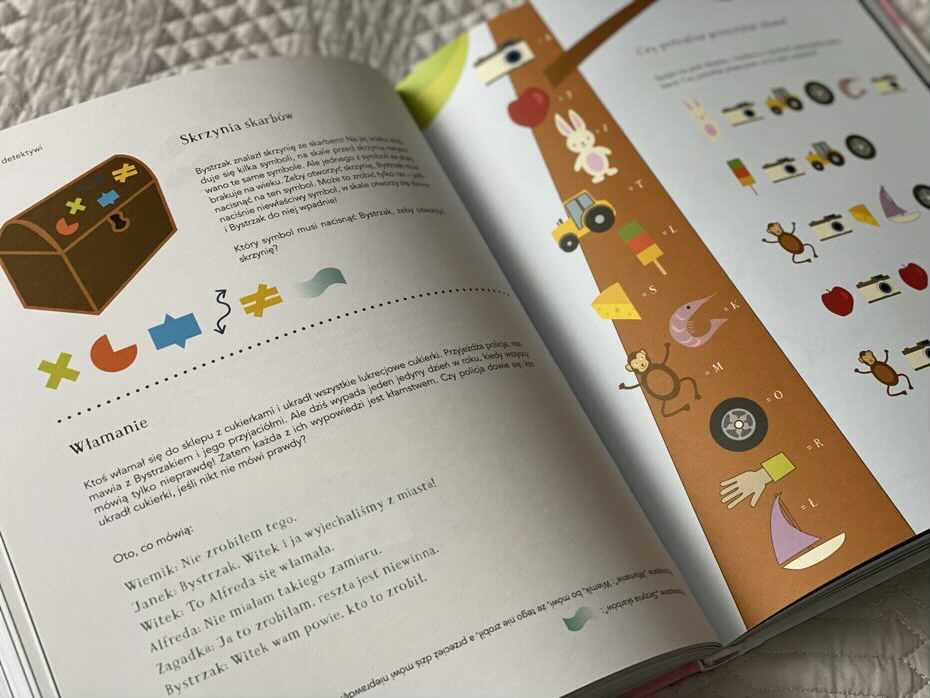 Tytuł jest bardzo kolorowy i zachęcający do wspólnej nauki poprzez zabawę. Łatwy w odbiorze i użytkowaniu. Niektóre zagadki są proste, inne bardziej skomplikowane i wymagające chwili zastanowienia. Jak dla mnie ciekawy mnie okazał się dodatek na końcu książki, poruszający problemy w nauce u dzieci, przesłaniające ich prawdziwe zdolności oraz kilka smacznych przepisów, które chciałabym wypróbować.