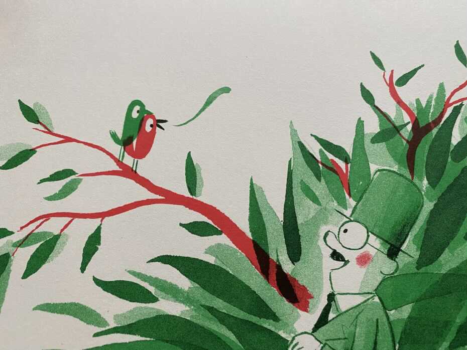 Pewnego dnia Fiu Fiu przestał śpiewać, a mężczyzna, próbując go pocieszyć, kupił mu kwiatek szczęścia.