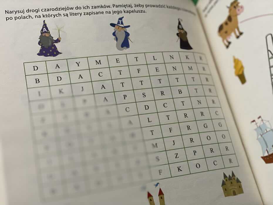 Rozwiązując zadania, mali czytelnicy ćwiczą spostrzegawczość i koncentrację, rozwijają umiejętność logicznego myślenia, dostrzegania prawidłowości i reguł, a także stają się samodzielne i kreatywne. Łamigłówkowy charakter zadań pozwala na utrwalanie nabytych umiejętności oraz zapewnia dobrą zabawę edukacyjną. Co więcej, dzięki tej książeczce maluchy polepszą zdolności liczenia, czytania, rozpoznawania głosek i dopasowywania obrazków pasujących do tekstu.