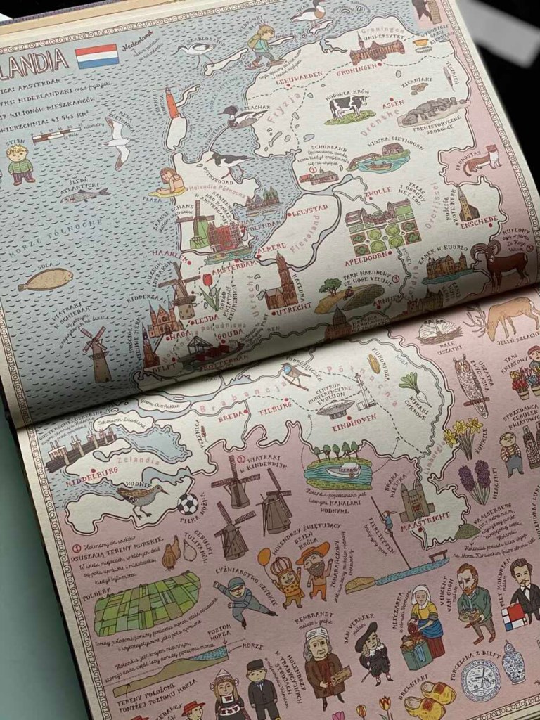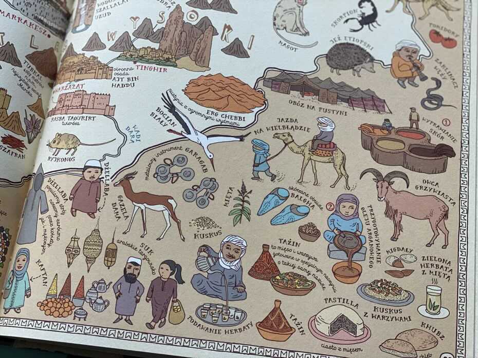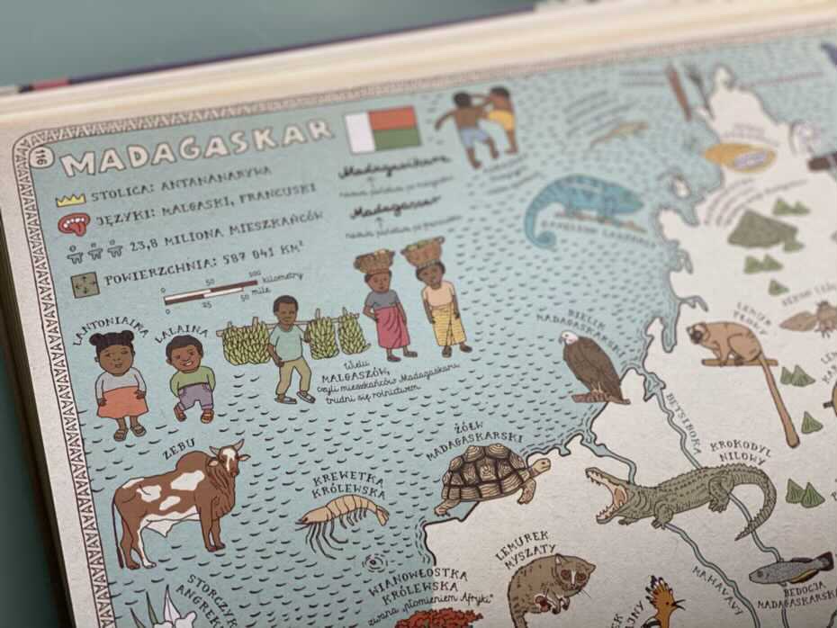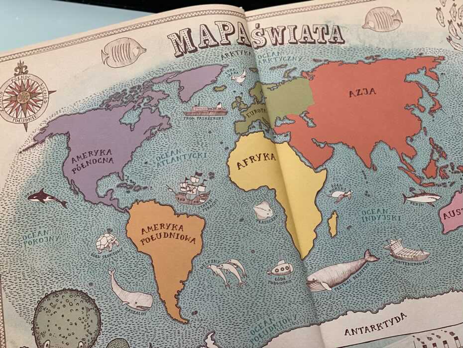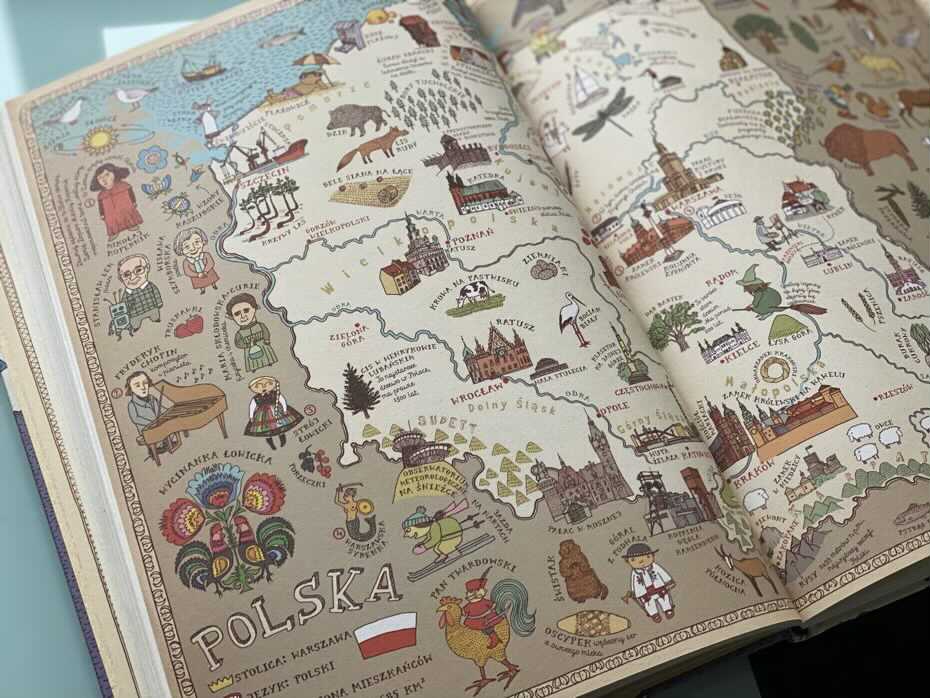 „Mapy. Obrazkowa podróż po lądach, morzach i kulturach świata” to potężne przedsięwzięcie, które obejmuje cały świat, wskazując na specyfikę, tradycje i charakterystyczne cechy poszczególnych krajów, bez dokonywania szerokich uogólnień czy ocierania się o etyczną krytykę. Duży format lepiej pomaga również przekazać skalę rozmiarów danych krajów. Książka zapewnia świetną zabawę i okazję dla dziecka do spędzenia godzin na zwiedzaniu i poznawaniu niezliczonych faktów o naszej planecie. Według mnie to prawdziwa skarbnica wiedzy w bardzo przystępnej i atrakcyjnej dla dziecka formie oraz niezła motywacja do pogłębiania jej poza książką. Zdecydowany „must have” dla każdego domu, w który są dzieci. To także publikacja, która u nas jest zdecydowanym strzałem w dziesiątkę, duetu Mizielinskich. Bardzo polecam!
