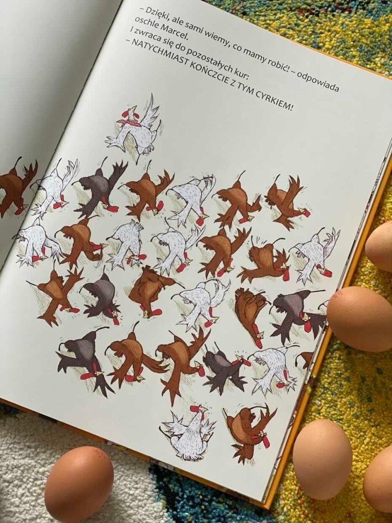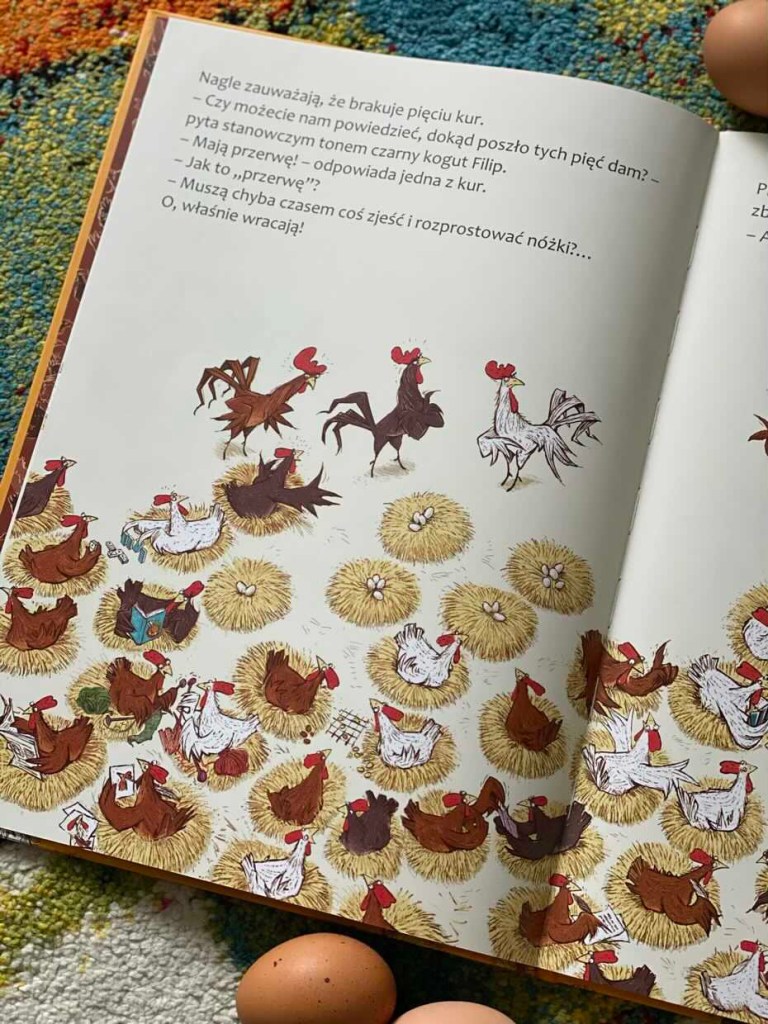„Kury, czyli krótka historia o równości” to książeczka dla dzieci, która w zabawny sposób wyjaśnia podział obowiązków domowych i tłumaczy, dlaczego walka jest skuteczniejsza, jeśli wszyscy koordynują swoje działania.