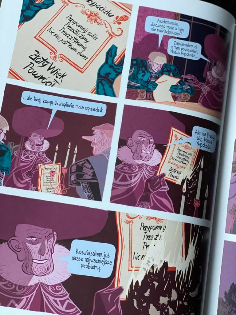 „Złoty Wiek 2” to zapierająca dech w piersiach powieść graficzna, a jej głębokie kolory odzwierciedlają nastrój akcji. Kolorystyka i bardzo stylistyczne podejście do ilustracji nadają książce upiorny charakter i złowieszczy wygląd. Tradycyjny epos z typowym herosem ustępuje miejsca opowieści o pełnej namiętności bohaterce, a średniowieczna baśń przekształca się w przypowieść społeczną.