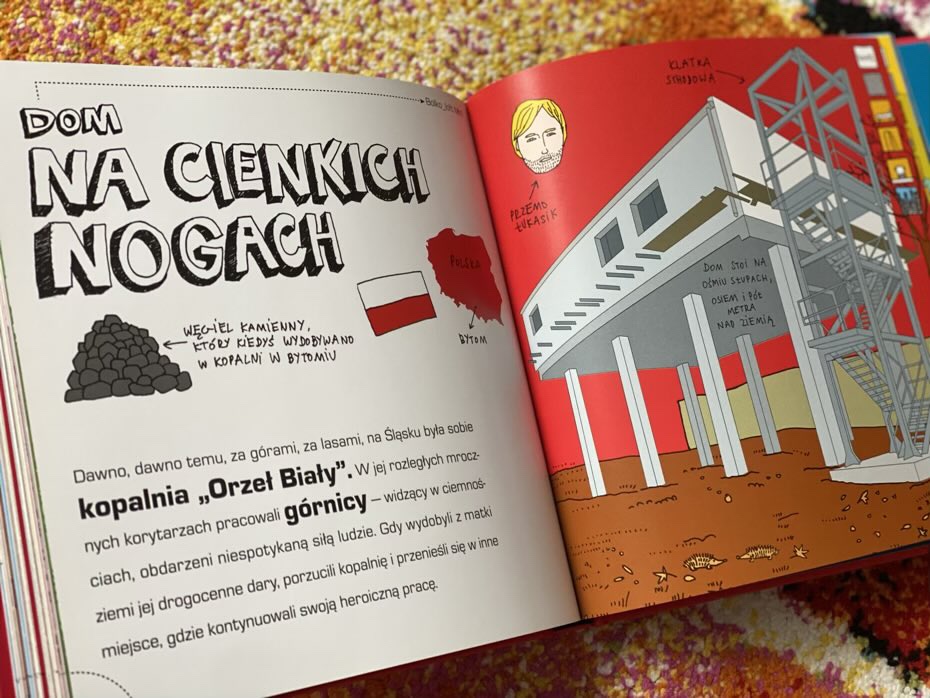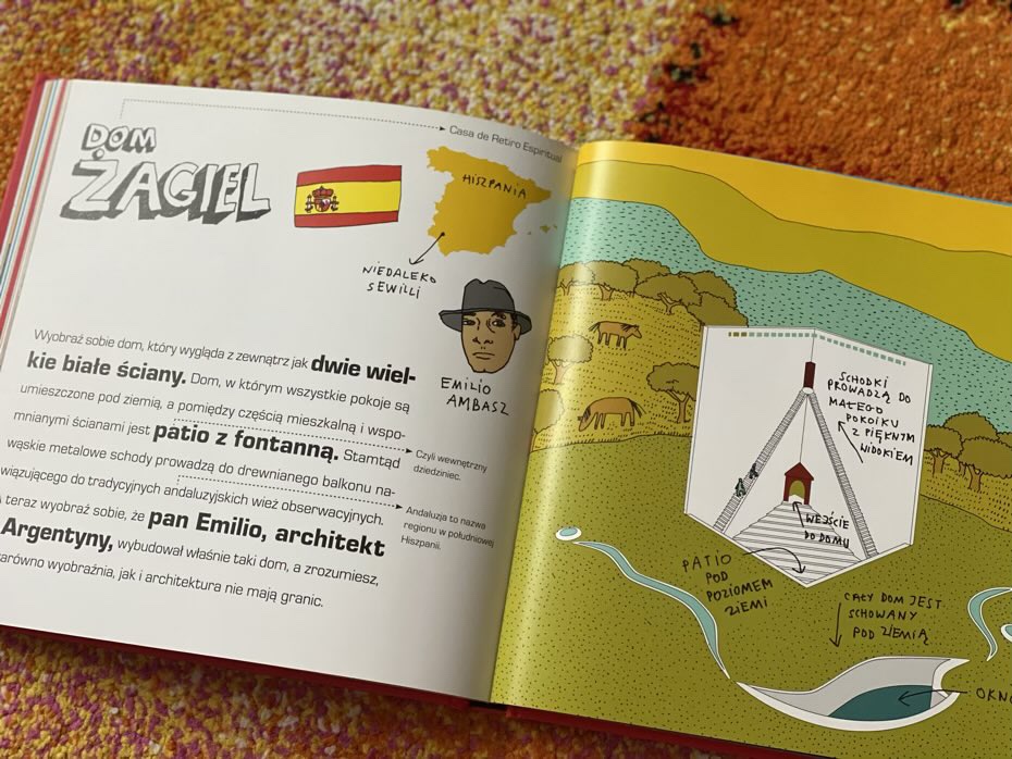 Ta pomysłowa książka pokazuje dzieciom, jak bardzo różne mogą być ludzkie domy i jak fascynującą sztuką jest architektura. Jej dowcipne, bogato kolorowe rysunki i przystępne opisy 35-ciu niezwykłych domów cieszą oko niejednego odbiorcy.
