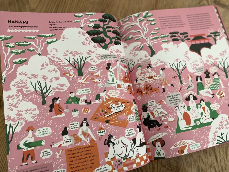 Na kartach publikacji znajdziemy 24 bardzo różne święta. Każdemu z nich poświęcona jest jedna lub dwie rozkładówki. Niektóre z opisywanych świąt są nawet wpisane na listę dziedzictwa kultury UNESCO. Każdy opis to nie tylko geneza i zakres dat, ale także spora ilustracja wizualizująca uczestników fiest i festynów. Tekstom towarzyszą kolorowe i trochę zwariowane rysunki, które równocześnie mogą być zabawną wyszukiwanką.