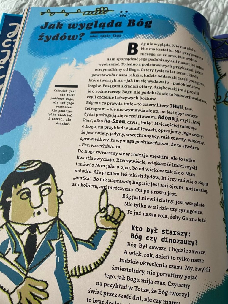 „Bozie, czyli jak wygląda Bóg?” to kompendium z religii i rewelacyjna pomoc dydaktyczna, ucząca tolerancji, a także wzbudzająca ciekawość świata. Za polecenie kupna książki dziękuję Karolinie – dzięki niej Adaś na jakiś czasu zaspokoił ciekawość i jest dużo bogatszy o dodatkową dawkę informacji. Polecam.