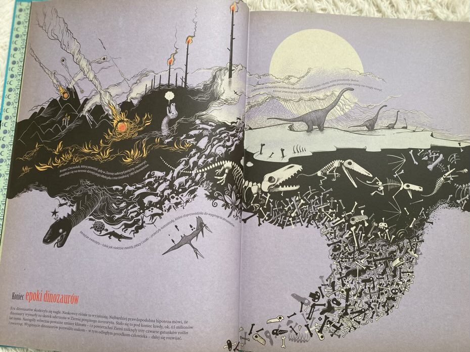 „Rzeka czasu. Podróż przez historię świata” to wielkoformatowa książka opisująca przebieg losów Ziemi od pierwszych oznak życia po chaotyczny świat, w którym obecnie żyjemy. Obszerny i pełny fascynujących faktów, zachwycających zestawień i ciekawych szczegółów, jest to świetny tytuł do przeglądania i z pewnością zaciekawi czytelników na tyle, aby chcieli szukać bardziej szczegółowych informacji w innych lekturach. Język jest prosty, a przy pomocy ilustracji i podstawowej wiedzy o historii świata jest bardzo łatwy do zrozumienia. Bardzo polecam.