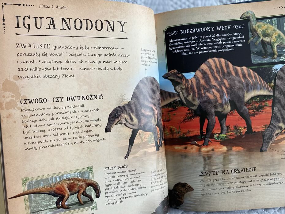 „Dinozaury i inne prehistoryczne zwierzęta. Kości gigantów” to książka, która przeniesie czytelnika miliony lat wstecz, odkrywając przed nim tajemnice, jakie skrywają szkielety potężnych, jak i nieco mniejszych dinozaurów. Ilustracje są czytelne i odważne, a informacje podane są w niewielkich fragmentach tekstu, dzięki czemu są dostępne nawet dla najmłodszych odbiorców. Myślę, że dinofani będą zachwyceni możliwością dogłębnego poznania ich cech i środowiska życia. Gorąco polecam tytuł dzieciom od 4 roku życia.