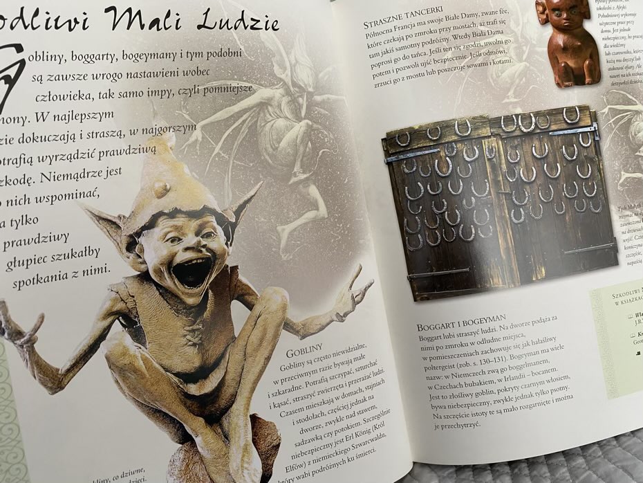 Publikacja podzielona jest na dziewięć głównych rozdziałów, a każdy z nich na dwie sekcje, które zapewniają czytelnikom wgląd w różne stworzenia. Każdy tekst opisuje bardzo skrótowo historię danego stworzenia / przedmiotu, jego właściwości i występowanie. Czasem są to trzy zdania napisane na kolorowym tle. Dodatkowo przy każdym stworzeniu mamy podane w jakich filmach czy książkach występują dane motywy.