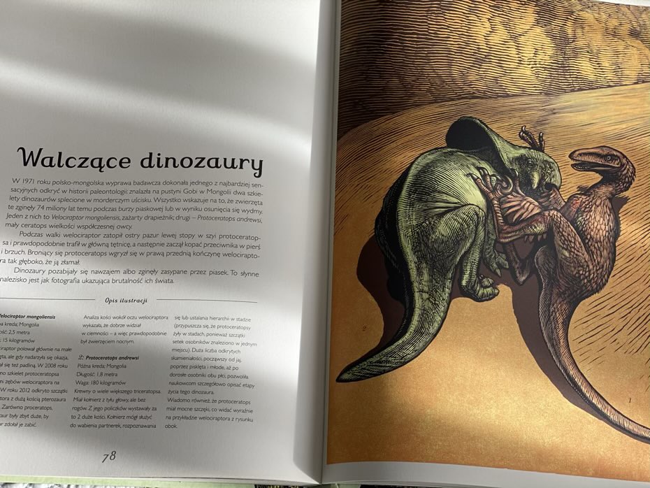 „Dinozaurium. Muzeum Dinozaurów” to zaproszenie do świata wymarłych zwierząt, które odkrywa przed czytelnikami niezwykłą kolekcję mezozoicznych potworów. Ilustracje w całym tekście są szczegółowe i pobudzają wyobraźnię. Uwzględniono wszystkie popularne dinozaury wraz z wieloma mniej znanymi gatunkami. Opisy są na tyle szczegółowe, że wszyscy oprócz najbardziej doświadczonych entuzjastów dinozaurów nauczą się czegoś ciekawego. Ten oszałamiająco wyselekcjonowany przewodnik odkrywa galerie dinozaurów i zapewnia doświadczenie fascynującej wystawy w zaciszu własnego domu. Polecam przez duże P.