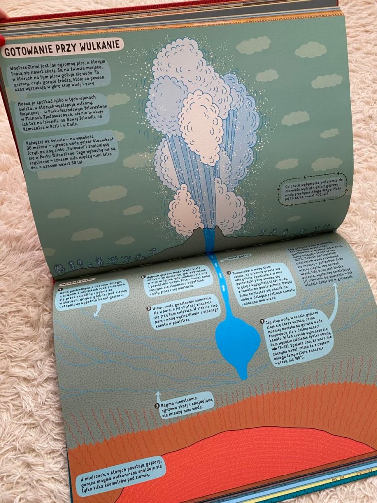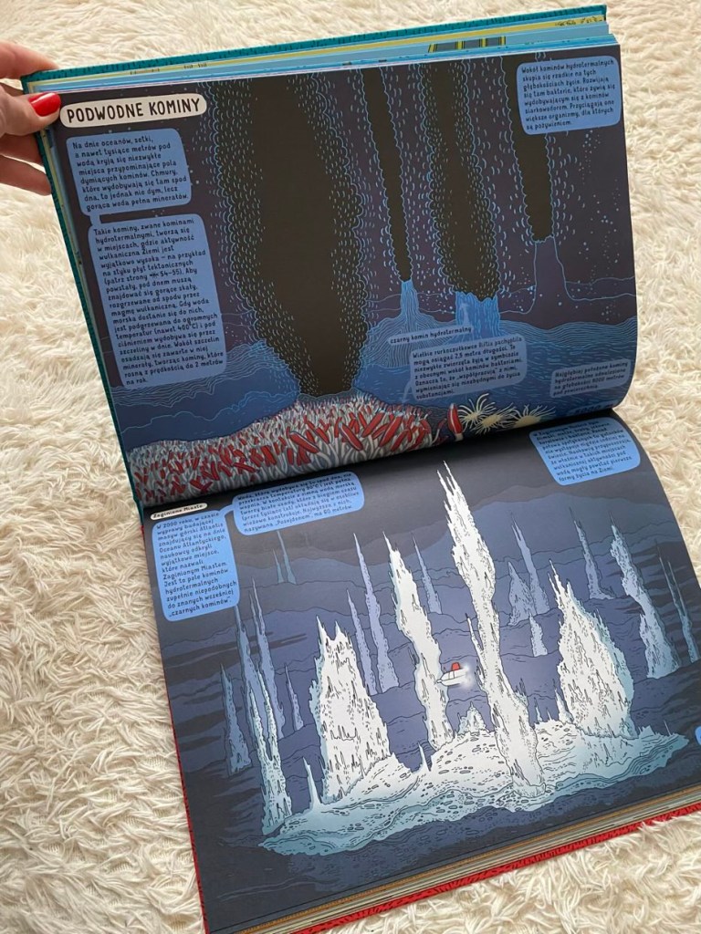 „Pod ziemią. Pod wodą” podobnie jak „Mapy. Obrazkowa podróż po lądach, morzach i kulturach świata”, to pozycja obowiązkowa dla fanów pięknie ilustrowanych książek w każdym wieku. Dla młodszych odbiorców jest to doskonale wyważona lektura, która zapewnia bogactwo informacji bez zbytniej encyklopedycznej gęstości. Ilustracje są cudownie wykonane, są jasne i ożywiają strony. Każda rozkładówka ma wyraźny tytuł, kolorowe obrazy oraz zwięzłe fakty i etykiety. Cudo!