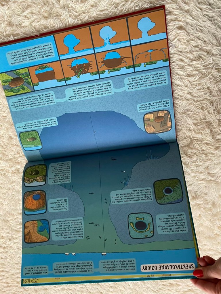 „Pod ziemią. Pod wodą” to wciągająca i inspirująca lektura informacyjna znanego polskiego małżeństwa Aleksandry i Daniela Mizielińskich, które zabiera dzieci na niezwykłą przygodę po Ziemi.
