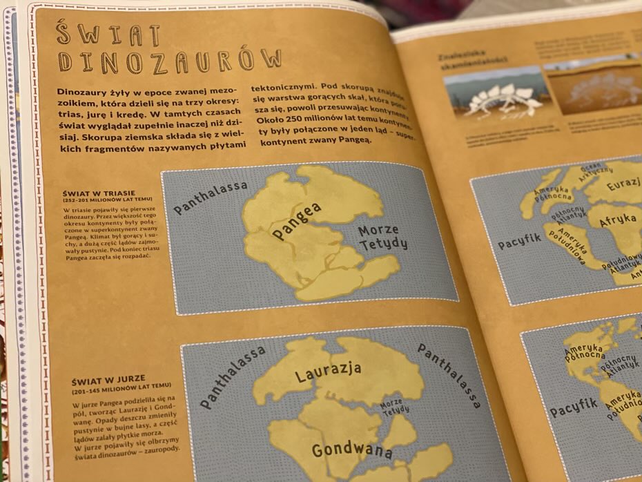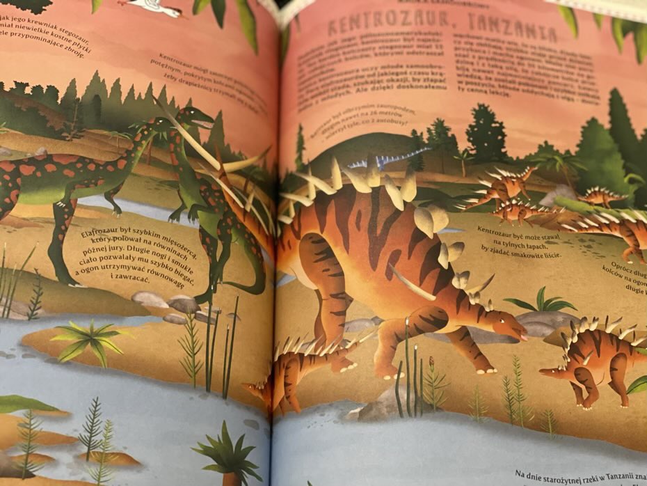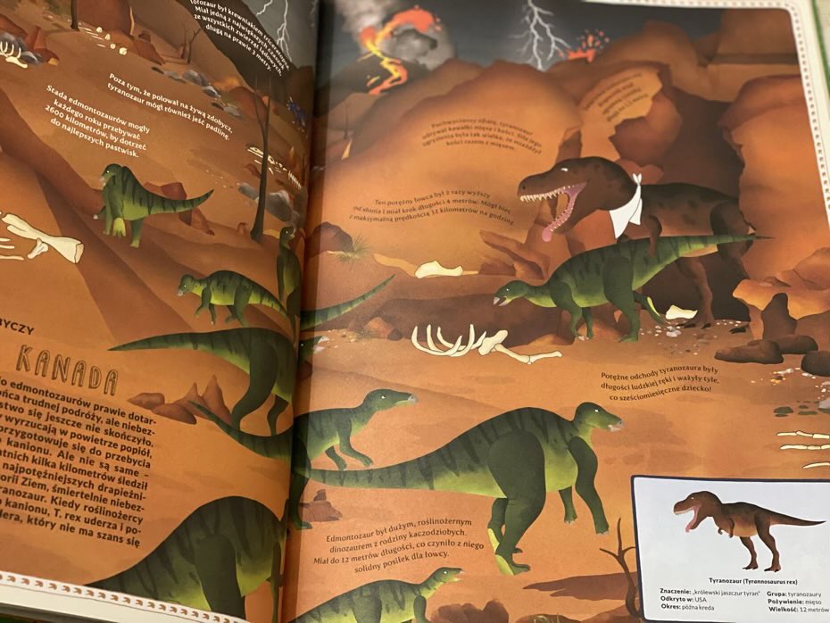 „Atlas przygód dinozaurów” jest prawdziwym skarbcem dla każdego młodego miłośnika prehistorycznych zwierząt, który zawiera 30 szczegółowo przedstawionych scen oraz mapy zmieniających się kontynentów i wykopalisk.