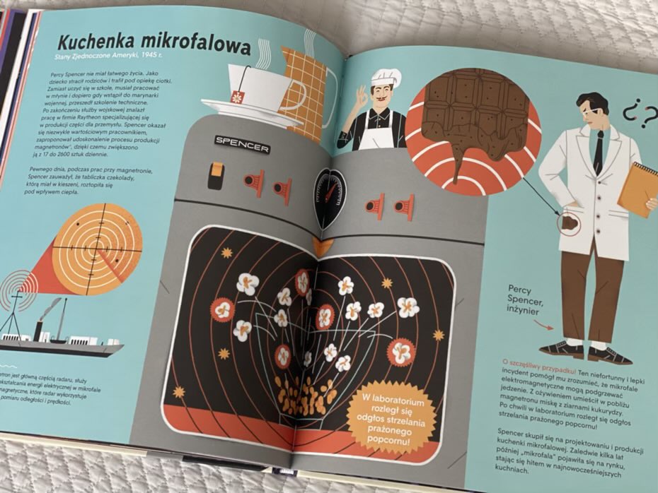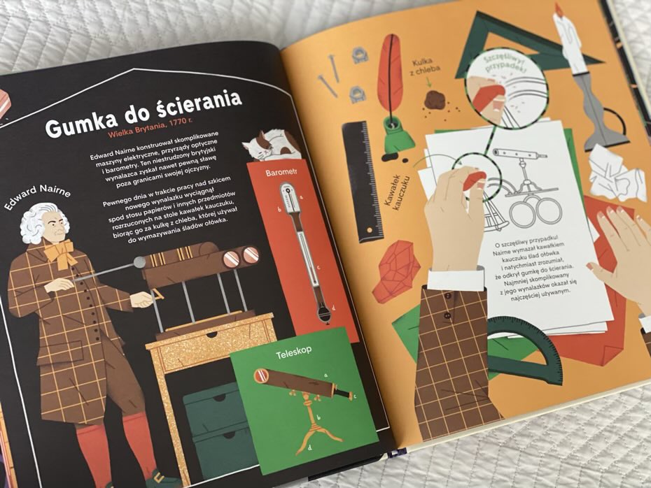 Warto także wspomnieć, że każda rozkładówka ma ciekawą szatę graficzną. Duży format, grube kartki z ciekawą wiedzą zamknięte są w twardej oprawie. Moc faktów, jaka płynie z czytania nie przytłacza, ale interesuje i wciąga. Soledad Romero Marino bardzo sprytnie i rzeczowo wyjaśnił dzieciom odkrycie, które pojawiło się wokół nas na bazie błędu jego wynalazcy. Krótka historia jak twórca tego dokonał, pozostaje w głowach na długo.