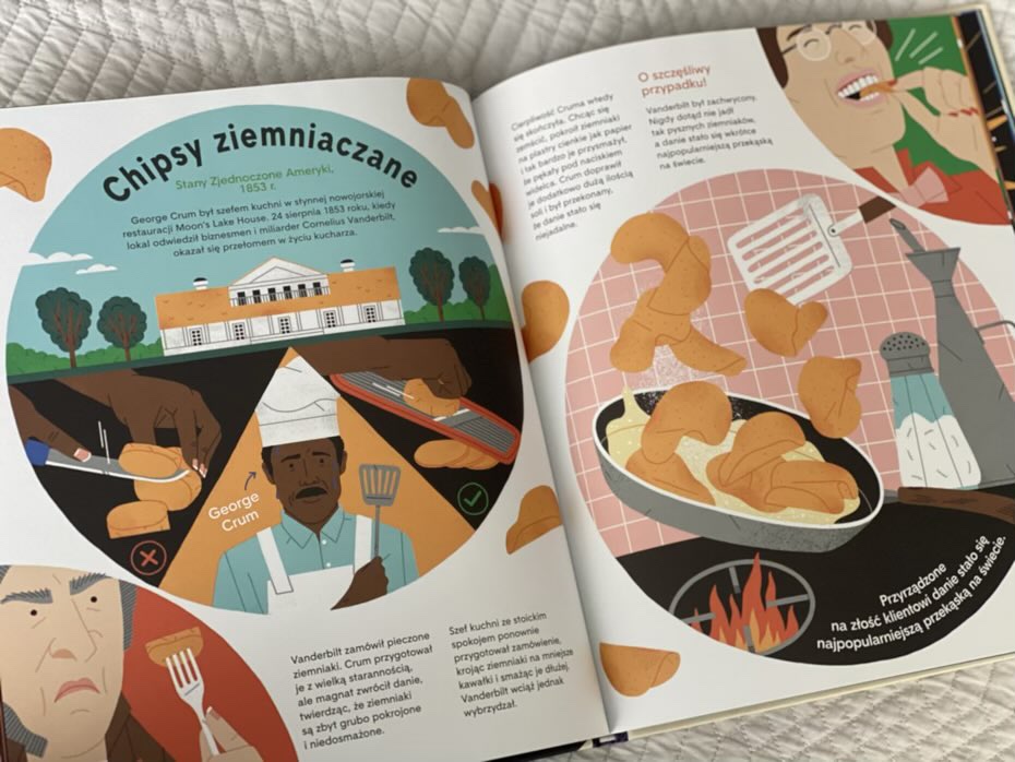 Co ciekawe, jedni blogerzy piszą, że książka obejmuje 16 przypadkowych odkryć, ja trzymam w rękach wydanie z 19-toma przykładami. Poza wymienionymi powyżej faktami, na stronach jest mowa także o kawie, szampanie, baterii, fajerwerkach, penicylinie, rzepach, teorii Wielkiego Wybuchu, tworzywie sztucznym, tarcie Tatin, radioaktywności, promieniowaniu rentgenowskim, sztucznym barwniku, karteczkach samoprzylepnych Post-it i mapie prądów morskich.