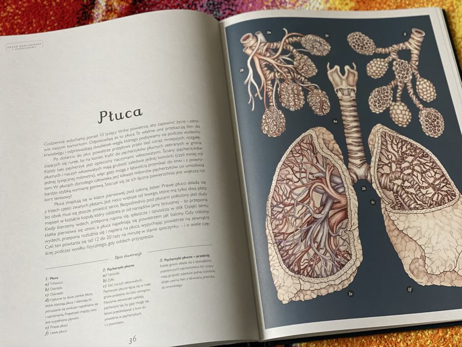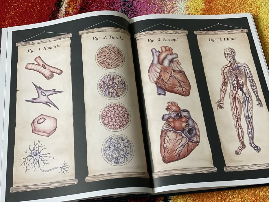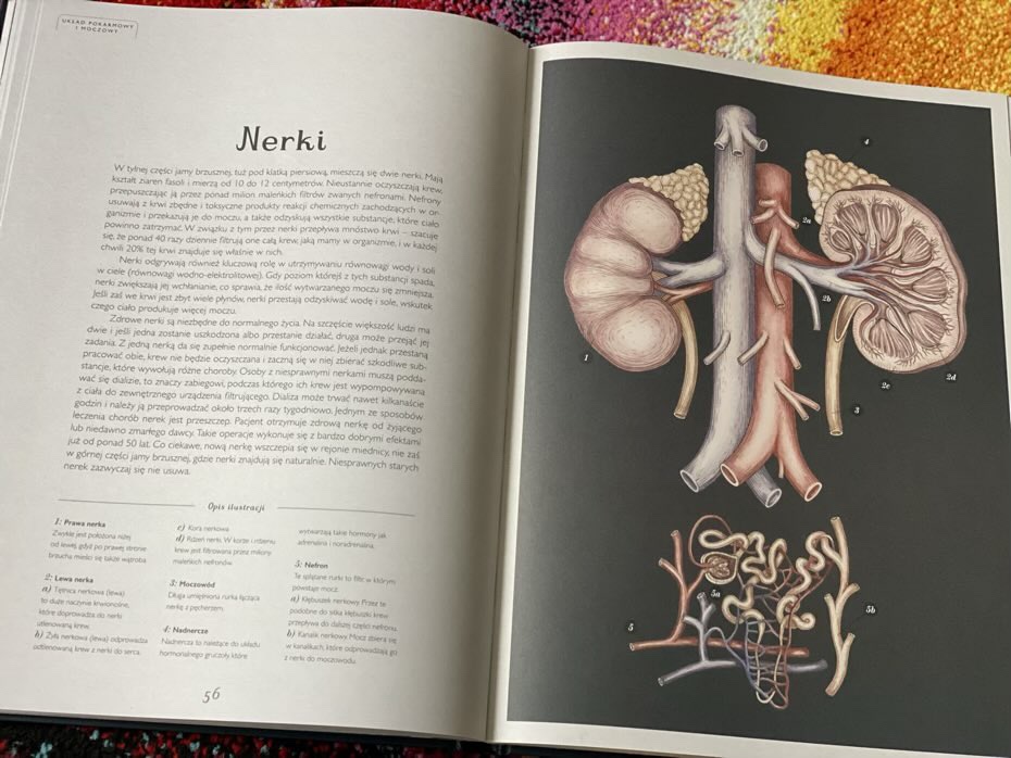 W naszej domowej biblioteczce jest kilkanaście książek o ludzkim ciele. Jednak ta pozycja jest szczególna, gdyż opisywany tekst jest niezwykle łatwy w zrozumieniu, a sąsiadująca z nim strona obrazuje to, co autor chciał nam przekazać. Nie ma tutaj trudnych pojęć, nazw łacińskich czy skomplikowanych definicji. Uważam, że ta książka jest ciekawym wprowadzeniem w logiczne myślenie, pokazując jak działa dany ludzki narząd. Mnie ogromnie zainteresowała rozkładówka o nerkach i trzustce. Dzięki tej przystępnej wiedzy jestem świadoma tego, jak te organy są dla nas ważne.