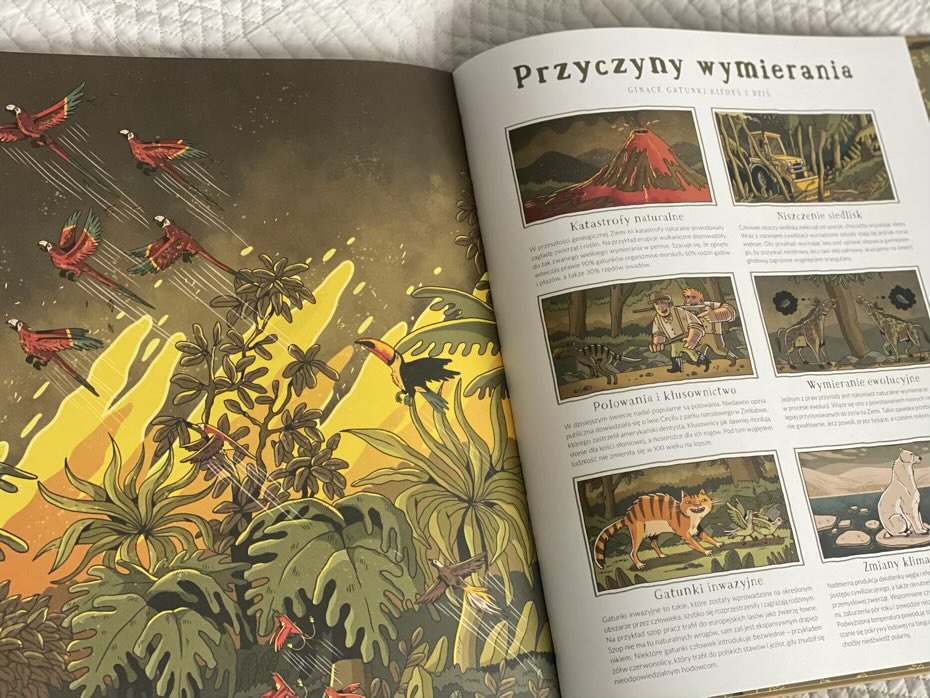 Co ciekawe, książka nie ogranicza się do dinozaurów i mamutów – wymarłych gatunków, które od razu przychodzą na myśl – ale także przedstawia też ostatnie kilka lat i stuleci. Oprócz przeglądu niedawno wymarłych ras, istnieje również lista zagrożonych obecnie gatunków zwierząt.