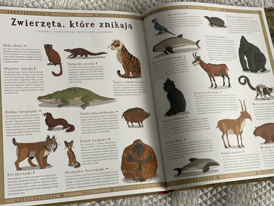 Na samym końcu lektury znajdujemy informacje o zwierzętach, które niedawno wyginęły i o kilku najważniejszych zagrożonych gatunkach.