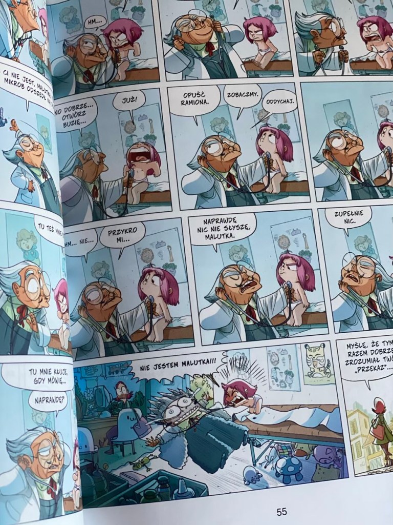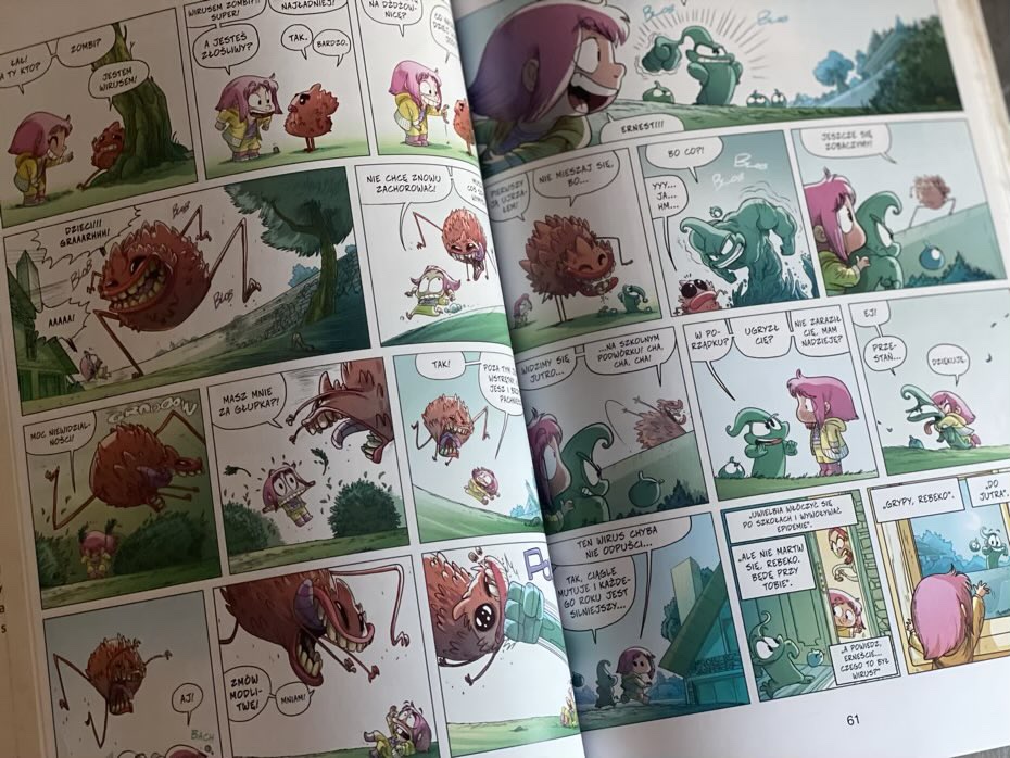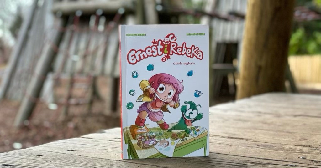 „Ernest i Rebeka. Szkoła wygłupów. Tom 2” jest powieścią graficzną, przeznaczoną dla młodych czytelników, choć i dorośli mogą się fajnie bawić podczas wspólnego czytania. Paleta kolorów na stronach jest wyrazista, kreska ciekawa oraz przykuwająca uwagę, a tekst i dialogi współgrają z rysunkami. Czytelnik, podążając za historią tytułowych bohaterów, śledzi każdy kadr, by dowiedzieć się co się może wydarzyć. Komiksy o przygodach głównych bohaterów bardzo nam przypadły do gustu. Mamy nadzieje, że szybko pojawią się kolejne tomy, bo naprawdę są fajne.