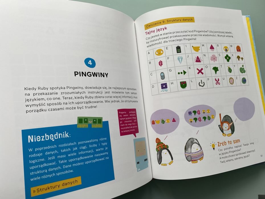 „Hello Ruby. Programowanie dla Dzieci” to po części historia, a po części działania. Zamiast uczyć języka programowania, uczy myślenia komputacyjnego i rozwiązywania problemów. Można to również uogólnić na takie rzeczy, jak samoregulacja emocjonalna, czyli problemy, które wydają się nie do pokonania i podzielenie ich na mniejsze części, a te z kolei rozwiązywać krok po kroku.