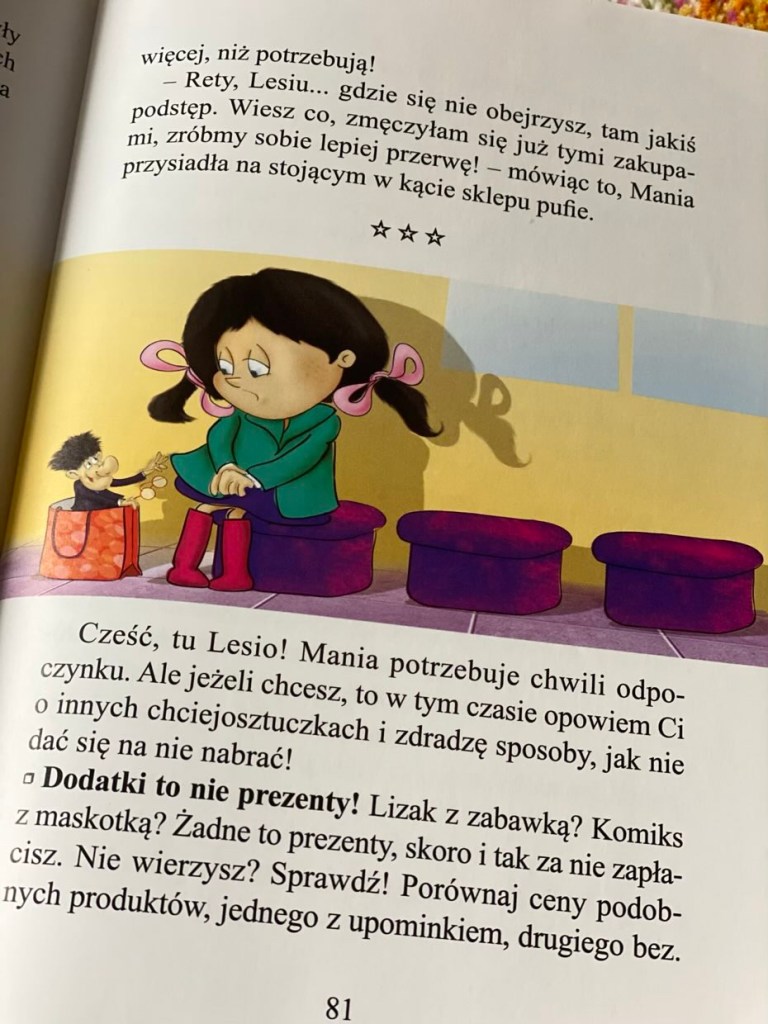 „Chciejosztuczki. Książka zakazana przez Chciejokorp” to doskonała i pożyteczna książka dla dzieci i rodziców, która pomoże im zrozumieć jak działają triki marketingowe.