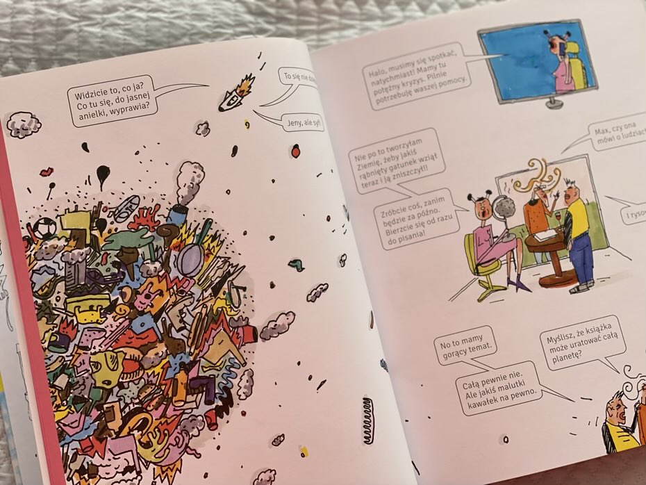 „Klimat. To, o czym dorośli ci nie mówią” to książka, która zagadnienia związane z kryzysem klimatycznym i jest uzupełniona humorystycznymi ilustracjami Maxa Skorwidera.