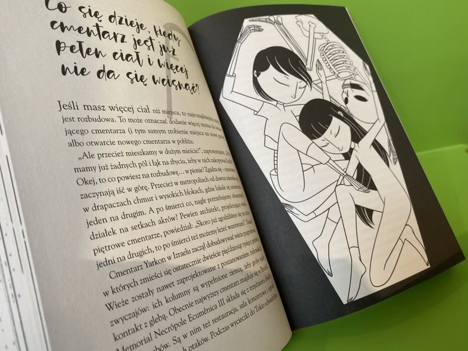 Lektura porusza bardzo ciężki i nieprzyjemny temat dla większości z nas. Jednak autorka w zabawny, ale też rzeczowy i merytoryczny sposób wyjaśnia zagadnienia związane ze śmiercią. Co więcej, udało jej się zachować balans, dzięki któremu czytelnik nie czuje się urażony, bądź zażenowany żartami przewijającymi się przez tekst.
