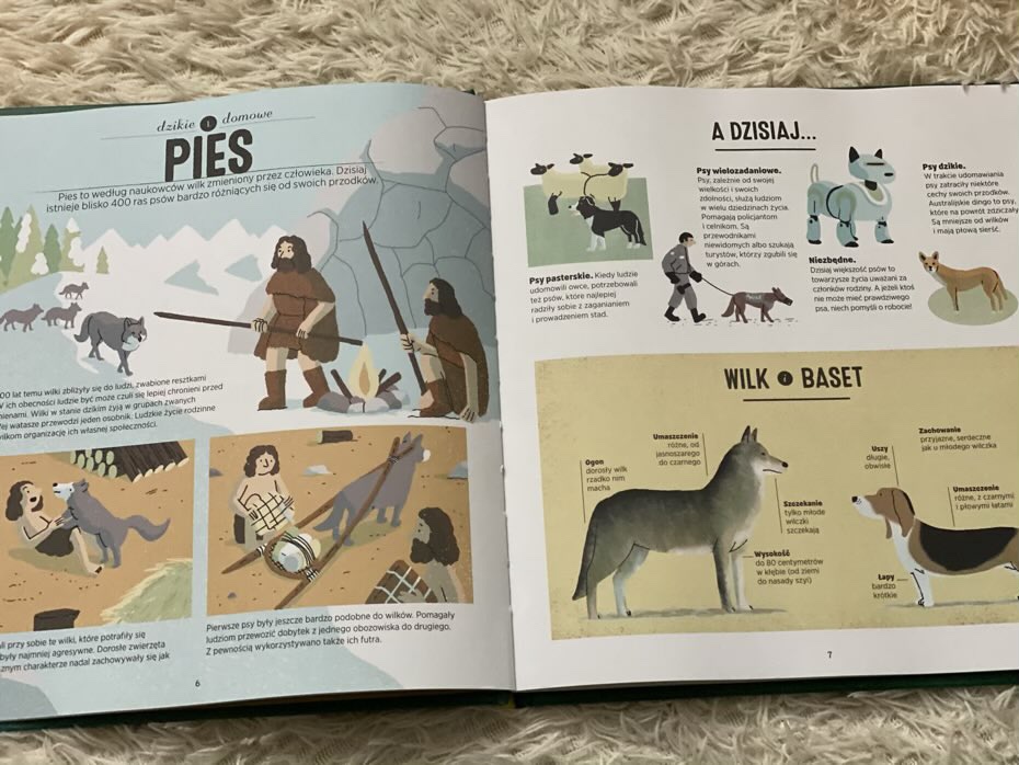 „Dzikie i domowe. Jak człowiek udomowił zwierzęta” to ilustrowany album opowiadający o niesamowitej przygodzie człowieka w obliczu dzikiej przyrody i pozwalający zanurzyć się w sedno mechanizmów ewolucji różnych gatunków zwierząt.